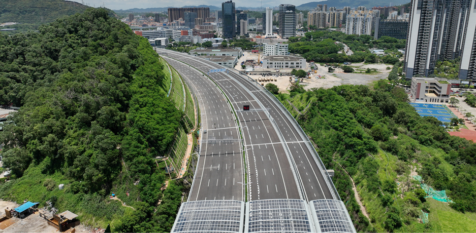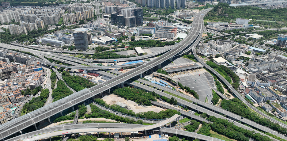 广深沿江高速二期第1合同段,项目全长5.7公里,起于机荷高速公路黄鹤收费站,终于深中通道东人工岛,双向八车道,设计速度100km/h,是沿江高速与深中通道、机荷高速公路、广深高速公路、宝安国际机场的重要连接线,深中通道侧接线(沿江高速二期)项目充分发挥高速路网优势,加快城市融合、资源要素流动,带动广州、深圳、珠江口西岸三大都市圈联动发展,极大提高环珠江口100公里“黄金内湾”的“含金量”,在“黄金内湾”加快形成“一小时通勤圈”,深刻影响粤港澳大湾区的区域发展格局。沿江高速项目跨越“五路一场”(洲石路、机荷高速、广深高速、鹤洲收费站广场、机场南路、107国道),全线桥梁占比95%。首次在深圳使用曲线梁转体施工工艺,随着单个重达2900吨双幅曲线桥横跨广深高速实现空中同步转体到位,广东省首座在跨高速施工不封闭道路实现双墩空中转体的曲线桥顺利完成。