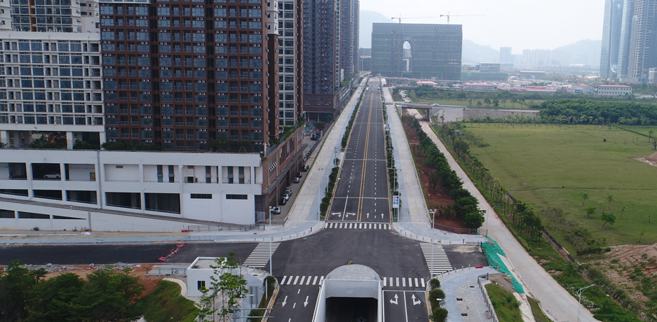 前海市政工程II标段位于深圳市前海合作区,是前海区最大的市政项目。2014年5月份,集团公司在近70家顶级施工企业参与投标的激烈竞争中脱颖而出,成功中标前海市政工程第II标段工程, 2015年6月4日开工,造价9.74亿元,工期910天。工程内容包括5条路段:听海路;沿江高速地面段;航海路;十一号路;前湾片区梦工厂与企业公馆周边的三条支路。