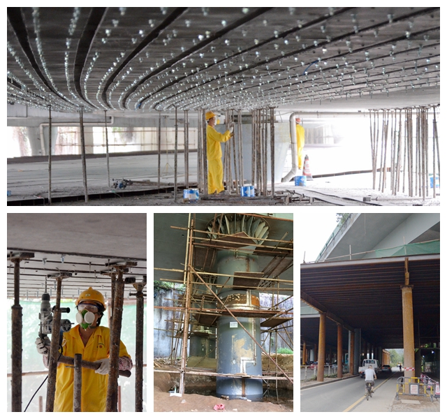 深圳市爱国路高架桥抢险加固工程分为东西两幅桥,东幅桥由14联桥组成,西幅桥由16联桥组成,高架桥上部结构采用预应力等高度连续箱梁。本次加固工程包括:全桥维修处置工程、交通疏解工程、E27-W31号共用墩加固工程等,工程合同金额:2936.98万。施工时间:2014年2月-2014年8月。