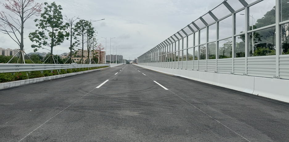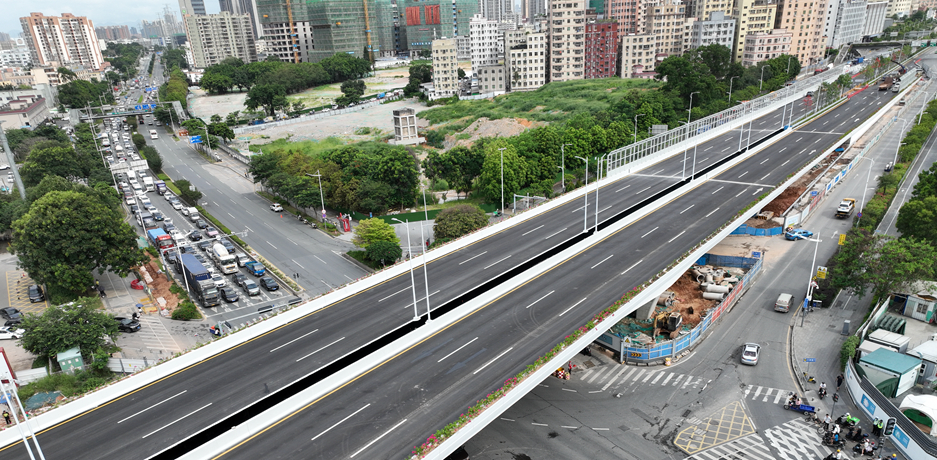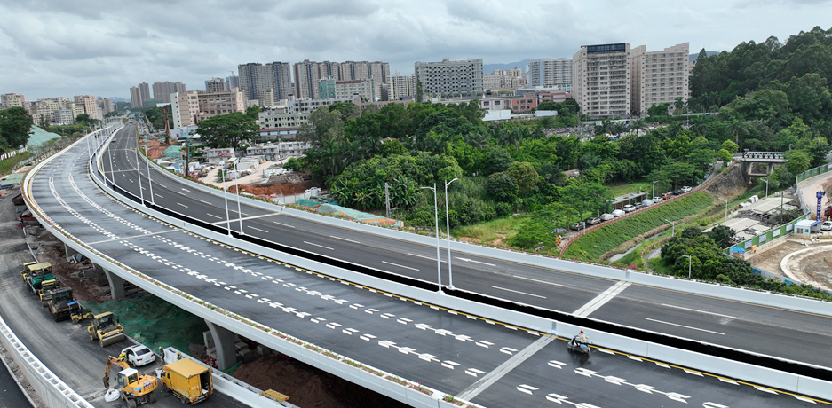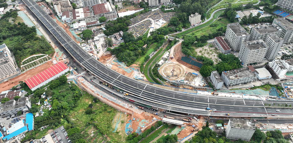 龙澜大道北延段工程,2022年10月8日中标,工程造价14.亿元,2024年6月30日主线通车,项目建设631天。龙澜大道北延段工程位于深圳龙华区福城街道,南起观光路-龙澜大道交叉口,北至外环高速新围互通,主路全长2.88公里,全线新建立交2座;新建桥梁12座(含人行天桥1座),桥梁总长度约2.88公里,最大跨径70米,双向六车道,采用城市快速路标准。建成后对完善深圳市“八横十三纵”高快速路网、构建连通松山湖、光明科学城、九龙山数字城和超级总部的快速通道,连接贯通深、莞两市的科技走廊,对加快“双区”经济、文化和社会的发展具有重大意义。