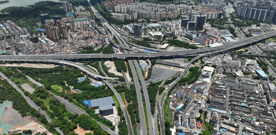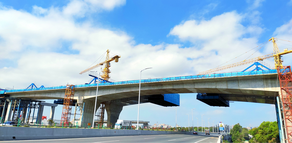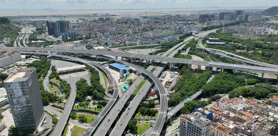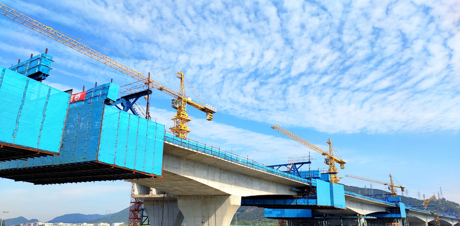 广深沿江高速二期第1合同段,项目全长5.7公里,起于机荷高速公路黄鹤收费站,终于深中通道东人工岛,双向八车道,设计速度100km/h,是沿江高速与深中通道、机荷高速公路、广深高速公路、宝安国际机场的重要连接线,深中通道侧接线(沿江高速二期)项目充分发挥高速路网优势,加快城市融合、资源要素流动,带动广州、深圳、珠江口西岸三大都市圈联动发展,极大提高环珠江口100公里“黄金内湾”的“含金量”,在“黄金内湾”加快形成“一小时通勤圈”,深刻影响粤港澳大湾区的区域发展格局。沿江高速项目跨越“五路一场”(洲石路、机荷高速、广深高速、鹤洲收费站广场、机场南路、107国道),全线桥梁占比95%。首次在深圳使用曲线梁转体施工工艺,随着单个重达2900吨双幅曲线桥横跨广深高速实现空中同步转体到位,广东省首座在跨高速施工不封闭道路实现双墩空中转体的曲线桥顺利完成。