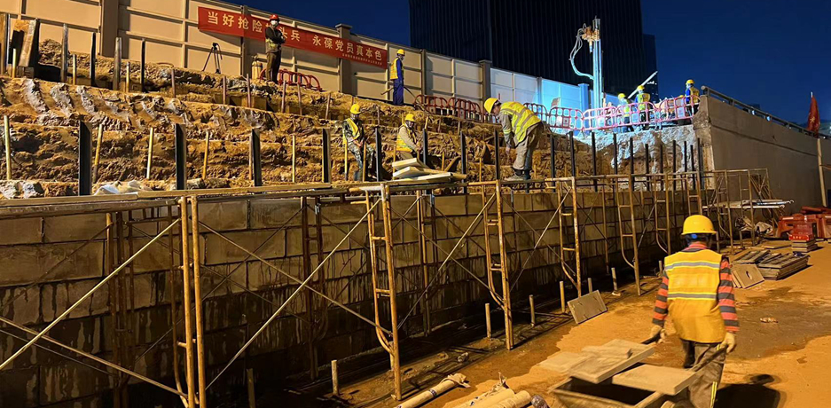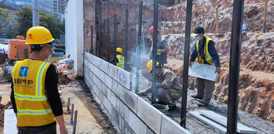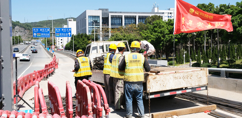 2022年2月23日,北环彩田立交南往北(出关)方向主线桥北侧路基挡土墙发生最大偏移量达14厘米的横向位移险情,路桥集团积极发挥应急抢险的抓手作用,迅速组织施工力量投入抢修工作,期间共投入应急抢修人员540余人次,出动挖机、皮卡车、泥头车、泵车、钻孔机、注浆机共160余班次, 完成钢板桩施工施工90根、旧挡墙及土方外运450余方,以及路面砼和防撞墙的浇筑。